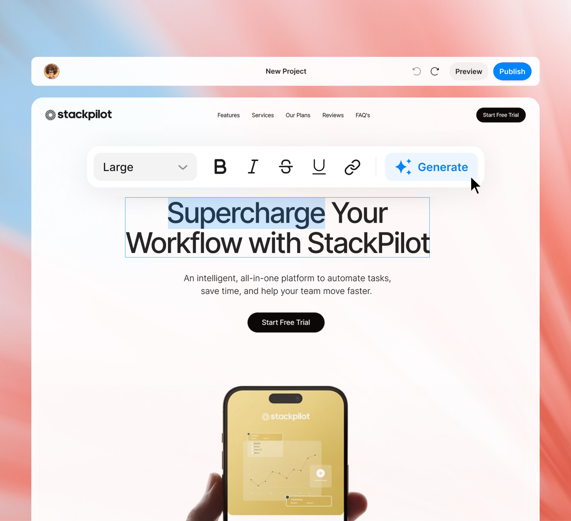 Choose from designer-made templates. Our AI crafts your site to look unique and polished, never cookie-cutter.