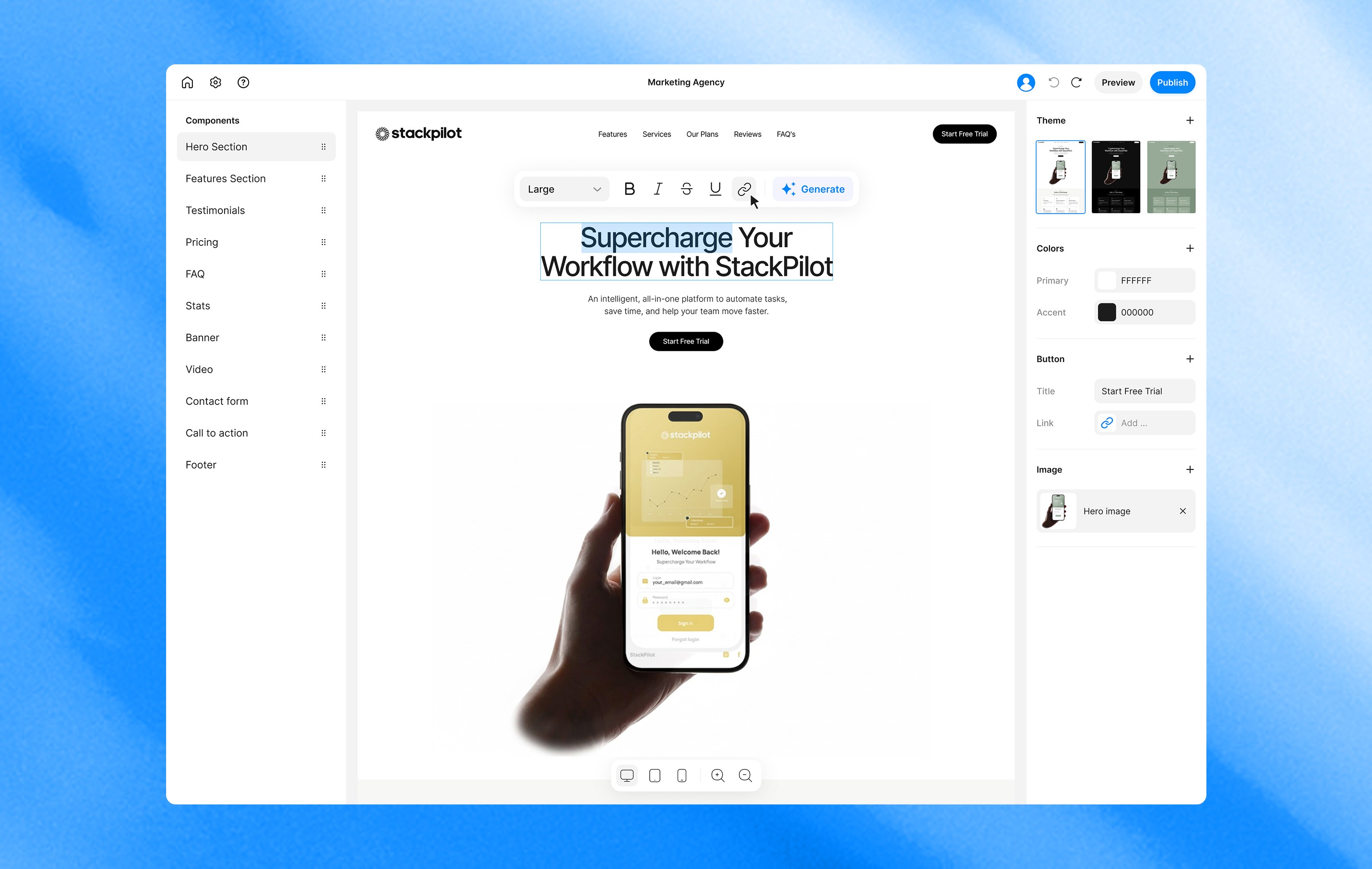 Edit content, fine-tune visuals, and launch your site in just a few clicks. No stress, no code, all polish.